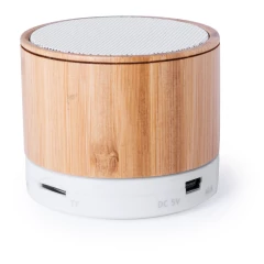 Głośnik bezprzewodowy BT 2.1 + EDR 3W z bambusową obudową, bateria 300 mAh, ładowany przez USB, posiada radio, funkcja odbierania połączeń, czytnik kart micro SD (nie dołączona), kabel w komplecie