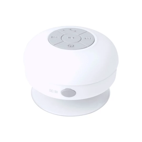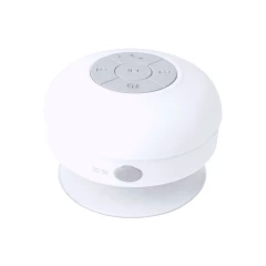 Głośnik bezprzewodowy BT 5.0 3W, wodoodporny, z przyssawką, posiada funkcję odbierania połączeń, może służyć także jako podstawka na telefon, gumowane wykończenie soft-touch, kabel mini USB w komplecie