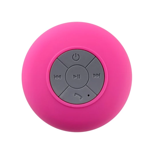 Głośnik bezprzewodowy BT 5.0 3W, wodoodporny, z przyssawką, posiada funkcję odbierania połączeń, może służyć także jako podstawka na telefon, gumowane wykończenie soft-touch, kabel mini USB w komplecie