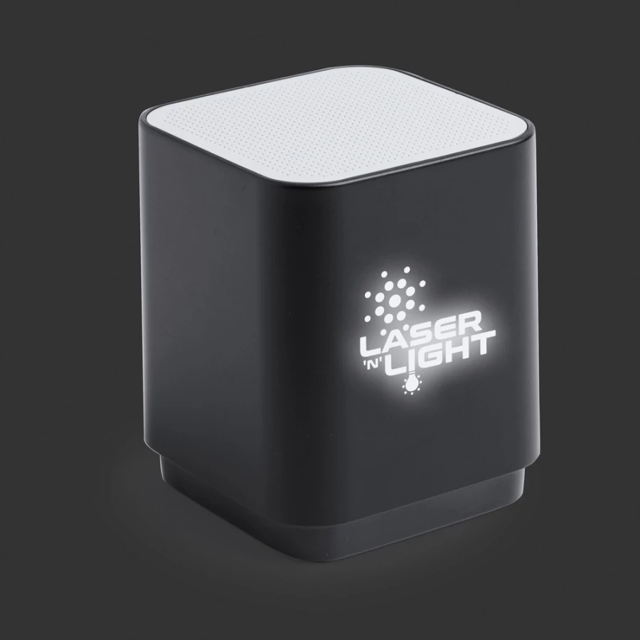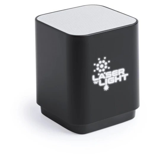 Głośnik bezprzewodowy BT 4.2 3W, 1 LED, grawer ukazuje podświetlaną powierzchnię, funkcja odbierania połączeń, bateria 400 mAh, ładowany przez USB, kabel micro USB w komplecie