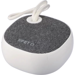 Głośnik bezprzewodowy BT 5.3, 3W, bateria 300 mAh, zasięg: 10 m, sznurek ułatwiający noszenie, biały kabel USB 30 cm w komplecie, ikona RPET na tkaninie, ikona recyklingu na produkcie, zapakowany w brązowe kartonowe pudełko, produkt wykonany z ABS i RPET