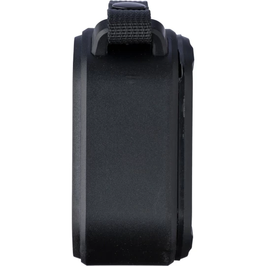 Głośnik bezprzewodowy, IPX6 co oznacza ochronę przed strumieniem wody przez 3 minuty, opaska na nadgarstek i karabińczyk umożliwiający przypinanie, moc wyjściowa 3 W, wejście DC 5 V, wbudowany akumulator 400 mAh, działa w odległości 15-20 metrów od źródła sygnału, stosunek sygnału do szumu 75 dB, częstotliwość 100 Hz-20 K Hz, kabel ładujący o długości 30 cm typu C w zestawie, wbudowana latarka LED (30 lumenów), panel słoneczny wydłużający czas użytkowania, 4 godziny czasu gry, BT 5.3, zapakowany w brązowy kartonik, produkt wykonany z ABS z recyklingu, PVC