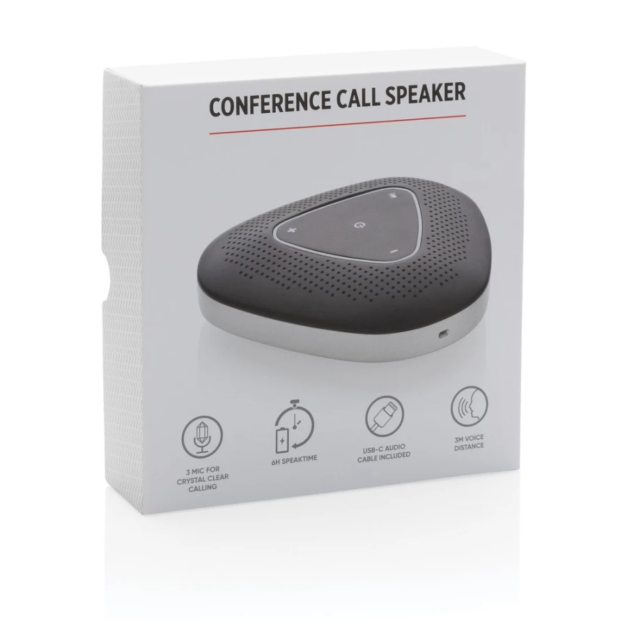 Bezprzewodowy głośnik konferencyjny BT 5.1, 2 wbudowane mikrofony wysokiej jakości do płynnych rozmów, wbudowany akumulator o pojemności 1200 mAh pozwala na użytkowanie do 6 godzin na jednym ładowaniu, przycisk wyciszania oraz kontroli głośności, kabel USB typu C o długości 100 cm w komplecie, ślad węglowy produktu: 3,37 kg CO2