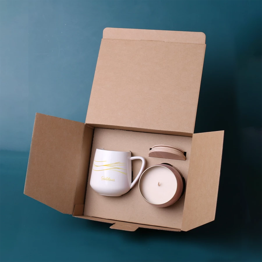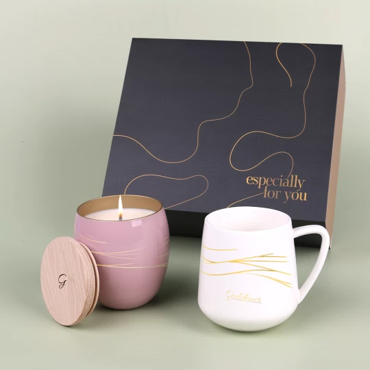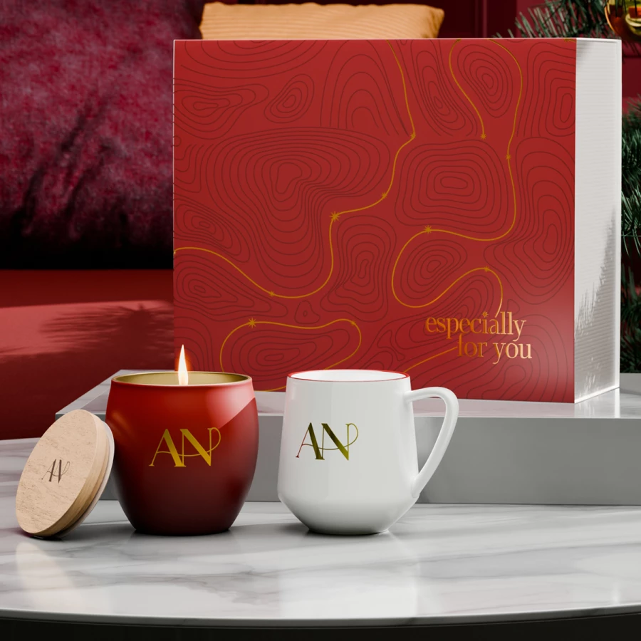 Subtelny porcelanowy kubek Eris wraz z customizowaną ekologiczną, wypełnioną woskiem sojowym świecą Glamour. Świeca posiada drewnianą pokrywkę pozwalającą zatrzymać zapach na dłużej, na którą również można nanieść branding. Zestaw pakowany jest w dedykowane ekologiczne opakowanie Snowy. Całość opatrzona elegancką personalizowaną obwolutą. PREZENTOWANE ZDOBIENIE MA CHARAKTER POGLĄDOWY I NIE JEST WLICZONE W CENĘ PRODUKTU. ZESTAW DOSTĘPNY W DEDYKOWANYM OPAKOWANIU SNOWY Z WYBRANĄ OPCJĄ ZDOBIENIA.