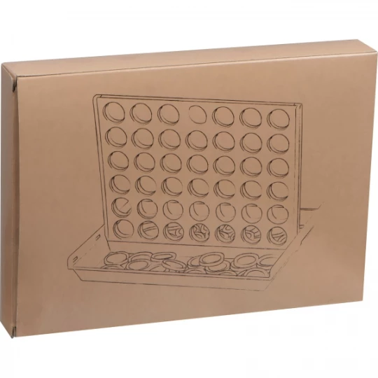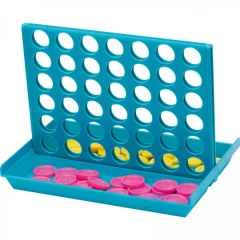 Wykonana z plastiku (PS) gra 4 w rzędzie z żetonami w dwóch kolorach i składaną planszą, co świetnie sprawdzi się np. w podróży.