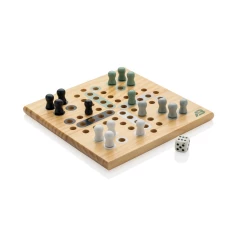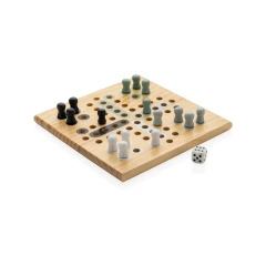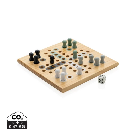 Gra planszowa „chińczyk”, wykonana z drewna, w pudełku z papieru kraftowego z certyfikatem FSC®, ślad węglowy produktu: 0,47 kg CO2