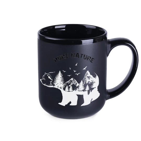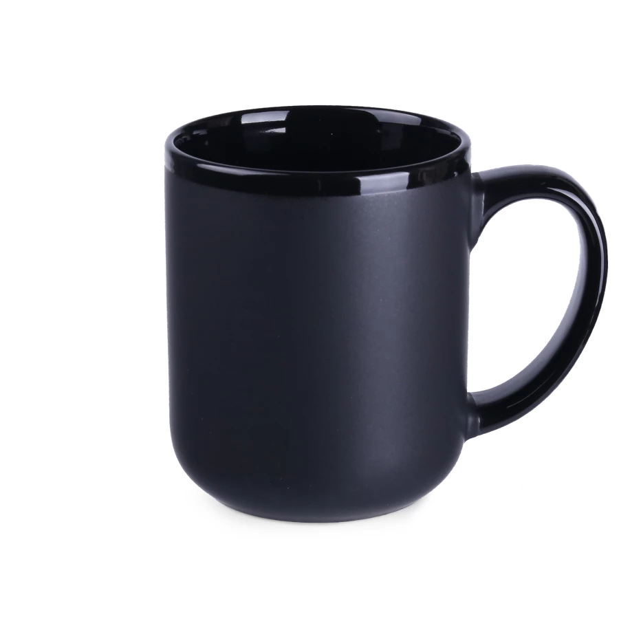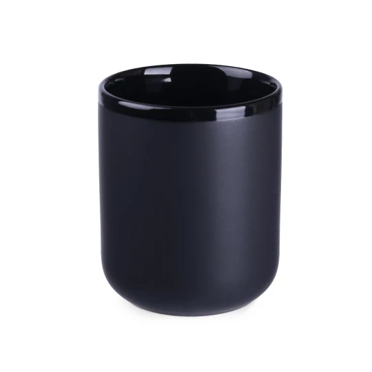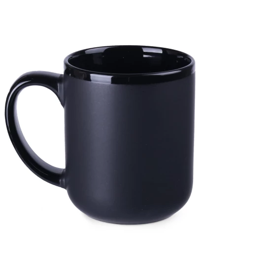 Pojemny kubek o masywnym kształcie. Wyróżnia go elegancka matowa powierzchnia oraz kontrastowe błyszczące wykończenie rantu. Dostępny w dwóch wersjach kolorystycznych.