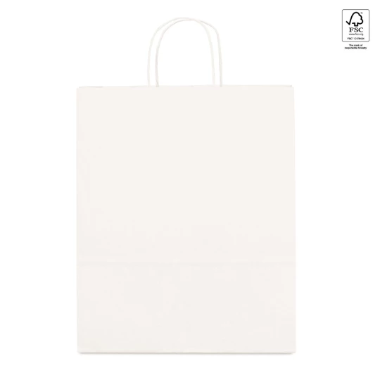 Torba papierowa Kraft (100 g/m²) ze skręcanym uchwytem. Wyprodukowano w Europie. Ten produkt jest wykonany z materiałów z certyfikatem FSC™ i innych kontrolowanych materiałów. 320 x 410 x 110 mm