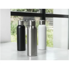 Guzzle to elegancka butelka na wodę z recyklingu z zakręcaną pokrywką ułatwiającą otwieranie i zamykanie. Jednościenna butelka o pojemności aż 820 ml idealnie sprawdzi się w chwilach największego pragnienia. Butelka wykonana jest ze stali nierdzewnej pochodzącej z recyklingu z certyfikatem RCS, dzięki czemu jest wytrzymała i ma długą żywotność. Co więcej, butelka oferuje wystarczająco dużo możliwości, aby w unikalny sposób zaprezentować dowolne logo lub wiadomość.