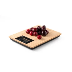 Cyfrowa waga kuchenna z bambusa z funkcją tarowania. Maksymalna obciążenie do 5 kg. Zawiera dwie baterie AAA. Dostarczany w pudełku upominkowym z papieru kraft. Ponieważ produkt jest wykonany z naturalnych materiałów, kolor produktu oraz wynik drukowania mogą się różnić w zależności od produktu. 145 x 200 x 17 mm