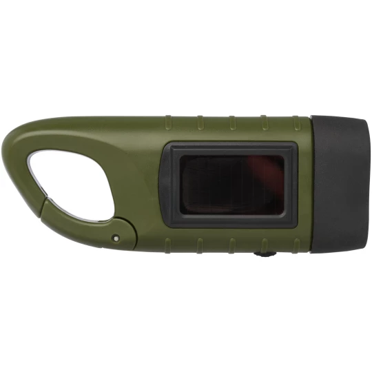 Helios latarka solarna z dynamem i karabińczykiem wykonana z tworzyw sztucznych pochodzących z recyklingu (10457564)