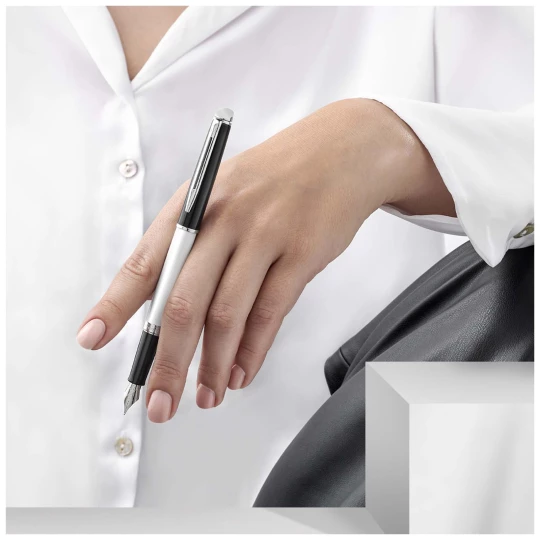 Waterman Hemisphere pióro wieczne z przeciwstawnymi kolorami i palladowymi wykończeniami to stylowy i wysokiej jakości przyrząd do pisania. Łączy w sobie nowoczesny design z tradycyjnym rzemiosłem, dzięki czemu nadaje się zarówno do codziennego użytku, jak i na specjalne okazje. Cienka stalówka zapewnia gładkie i precyzyjne pisanie, a palladowe wykończenia dodają elegancji. Pióro to wyróżnia się estetycznym wyglądem i niezawodnym działaniem i nadaje się zarówno do użytku prywatnego, jak i na prezent. Sprzedawany w ozdobnym pudełku upominkowym. Kolor tuszu: Niebieski. Żywotność: 1000 metrów.