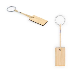 Prostokątny bambusowy brelok do kluczy z linką PET. Zawiera żelazny pierścień ułatwiający transport i przechowywanie. Ponieważ produkt jest wykonany z naturalnych materiałów, kolor produktu oraz wynik drukowania mogą się różnić w zależności od produktu. Pierścień: ø 32 mm | Produkt: 55 x 30 x 8 mm | Sznurek: 73 mm | Razem: 147 x 32 x 8 mm