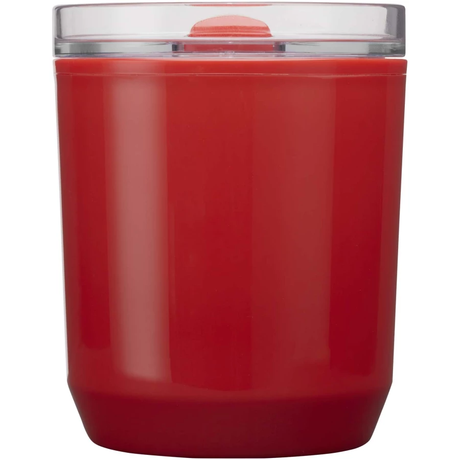 Kubek o prostym designie, pasujący do większości ekspresów do kawy i uchwytów samochodowych. Ma konstrukcję z podwójnymi ściankami, zewnętrzną powłokę z polipropylenu z recyklingu i wewnętrzną z polipropylenu. Przesuwana pokrywka jest wykonana z tworzywa sztucznego AS i polipropylenu. Pojemność: 180 ml.