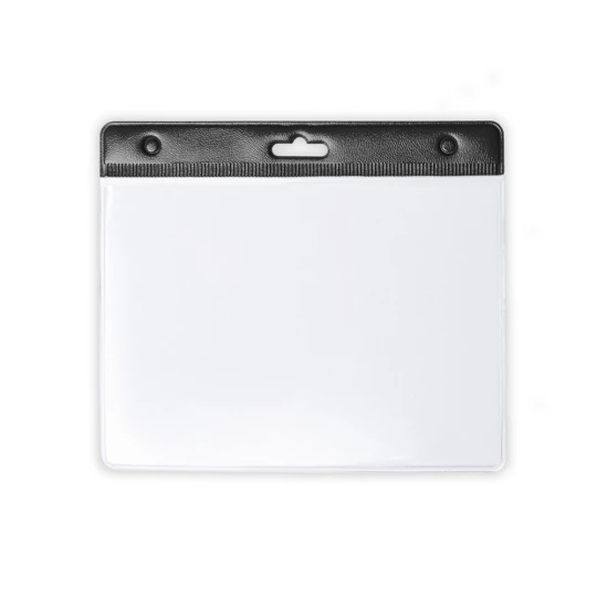Identyfikator targowy z kolorowym elementem, przezroczysty przód i biały tył