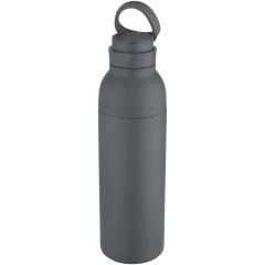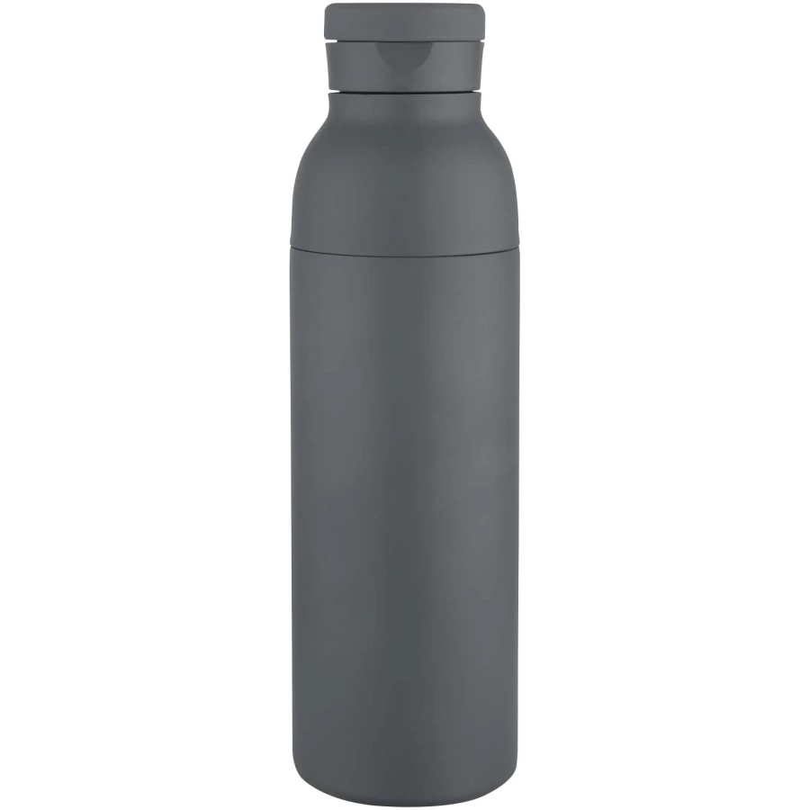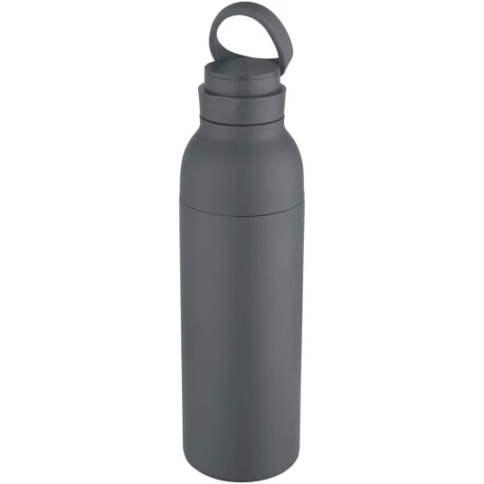 Dwuścienna, izolowana próżniowo butelka na wodę ze stali nierdzewnej z certyfikatem RCS, wyposażona w dyskretny silikonowy uchwyt wbudowany w pokrywkę. Dwuczęściowa konstrukcja ułatwia czyszczenie, a wytrzymała powłoka z lakieru proszkowego i miedziane pokrycie zapewniają długotrwałą wydajność. Zapakowana w pudełko upominkowe wykonane z kartonu z recyklingu. Pojemność: 650 ml.