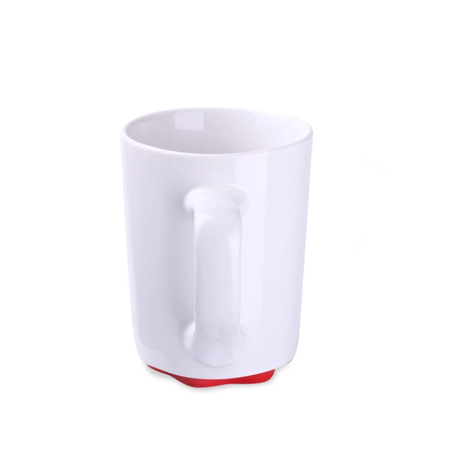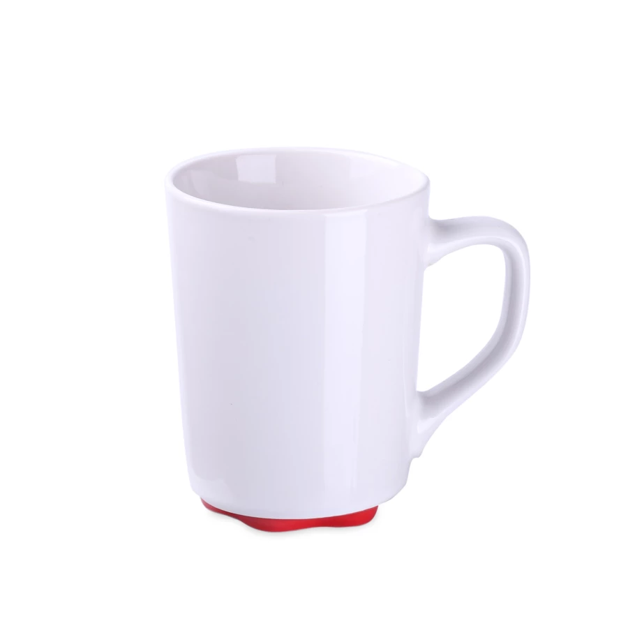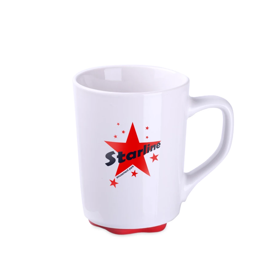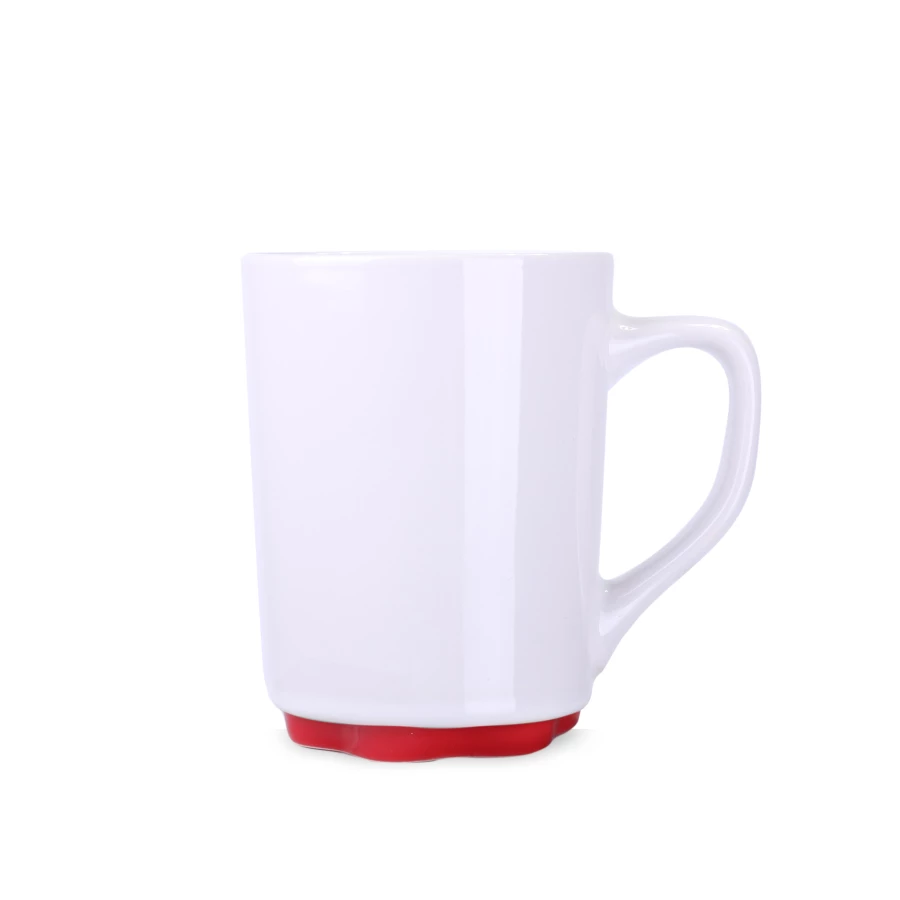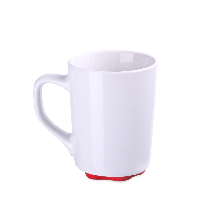 Biały kubek z oryginalnym i ciekawym spodem występującym w kilku kolorach. Proste ścianki dają duże możliwości w zakresie zdobień.