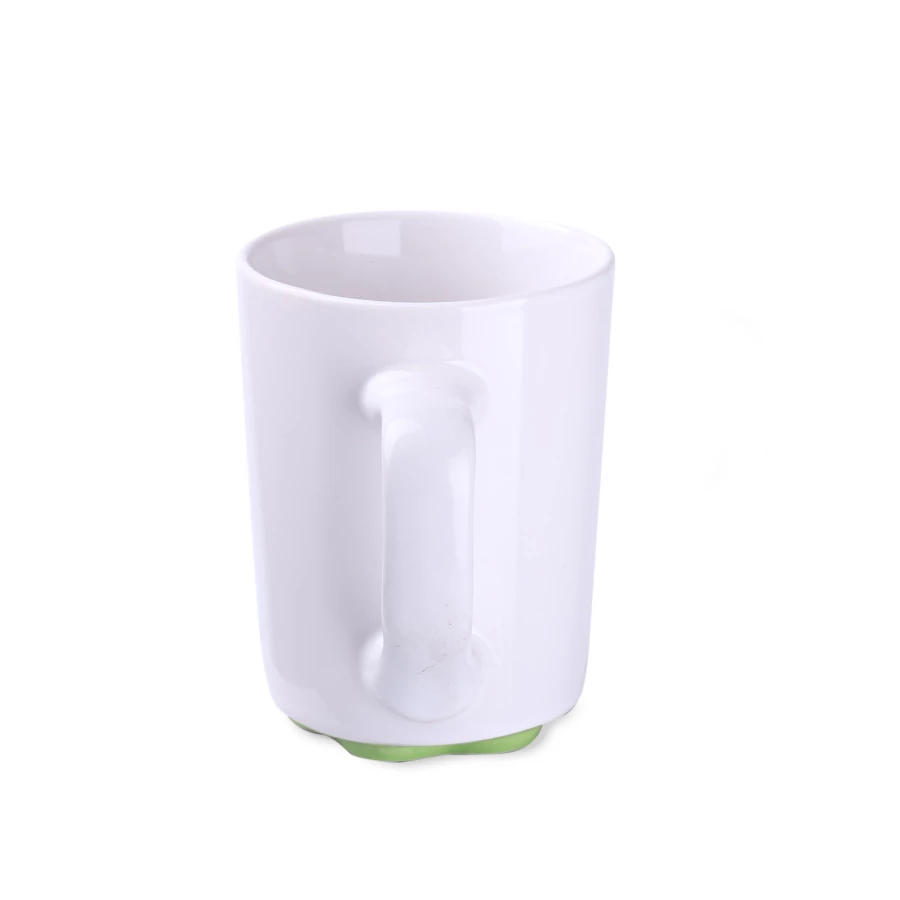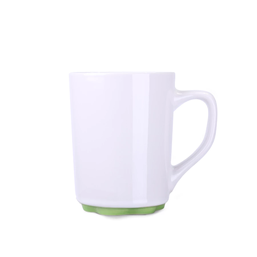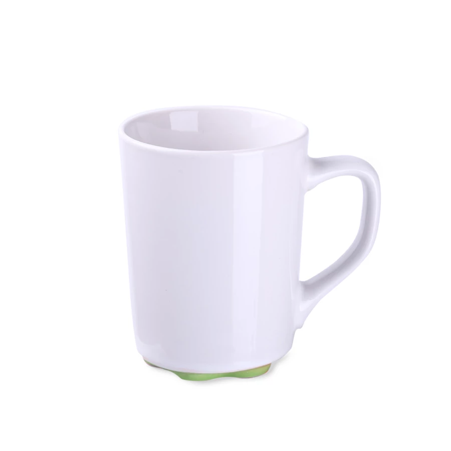 Biały kubek z oryginalnym i ciekawym spodem występującym w kilku kolorach. Proste ścianki dają duże możliwości w zakresie zdobień.