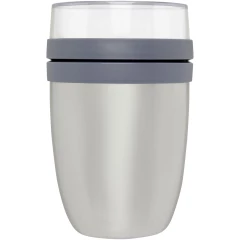 Izolowany pojemnik na lunch z dwiema komorami, aby oddzielenie przechowywać różne składniki. Oba pojemniki mają osobną pokrywkę, dzięki czemu składniki nie mieszają się. Utrzymuje temperaturę potraw gorących do 10 godzin lub zimnych do 16 godzin. Aby potrawy jak najdłużej pozostały gorące lub zimne, przed napełnieniem zaleca się przepłukać pojemnik na lunch gorącą lub lodowatą wodą. Pojemność górnego przezroczystego pojemnika wynosi 200 ml, co oznacza, że może pomieścić około 75 gramów żywności w formie stałej. Pojemność dolnego pojemnika wynosi 500 ml. Wykonany z trwałego materiału. Zewnętrzna strona naczynia pozostaje chłodna i sucha. Zalecane jest mycie ręczne. Plastikowe elementy pokrywki można myć w zmywarce. Wodoszczelne. Wolne od BPA.