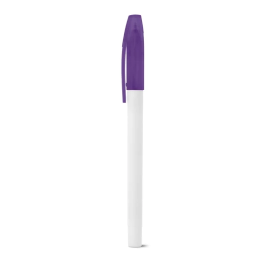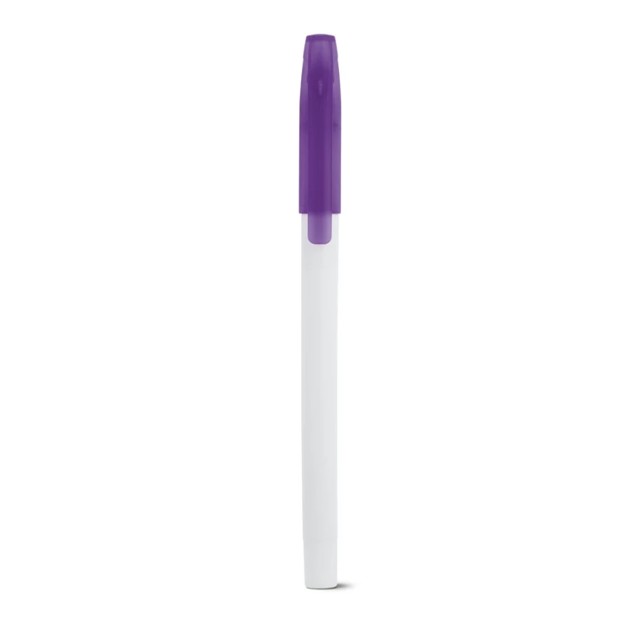 Długopis z PP z białym korpusem. Skuwka i klip dostępne w różnych kolorach. Tusz niebieski. ø10 x 142 mm