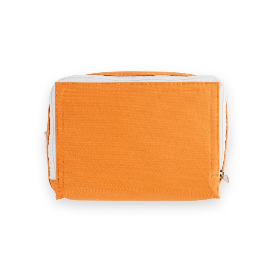 Torba termoizolacyjna mieszcząca do 6 puszek o pojemności 0.33 l, idealna do przechowywania napojów w chłodzie podczas wycieczek, pikników lub zajęć rekreacyjnych. Dostępna w szerokiej gamie kolorów.Materiał zewnętrzny: poliester 600DIzolacja termiczna: folia aluminiowaPojemność (l): 3Komory: 1 wyściełana komora głównaWymiary: 200 x 140 x 125 mm