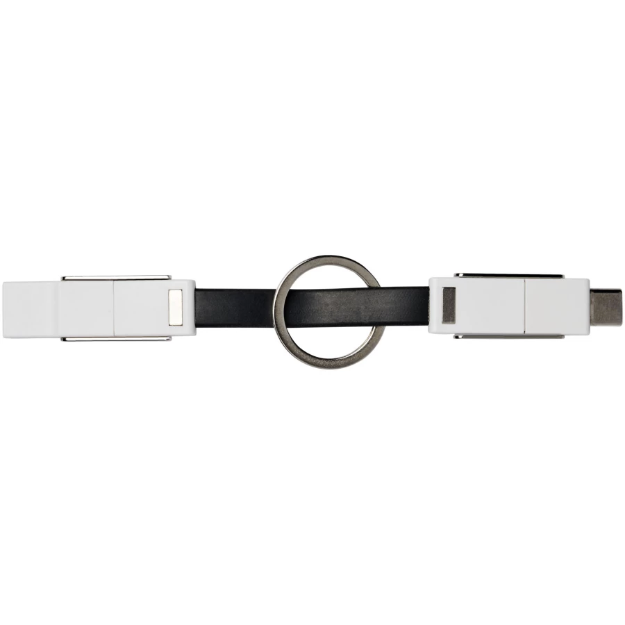 Kabel 4-w-1, dzięki któremu naładujesz wszystkie urządzenia. Posiada złącze USB typu A, typu C oraz końcówkę 2 w 1, która jest kompatybilna zarówno z urządzeniami z systemem iOS, jak i Android. Może być używany do ładowania i przesyłania danych. W zestawie znajduje się breloczek do kluczy i magnesy do wygodnego przenoszenia.