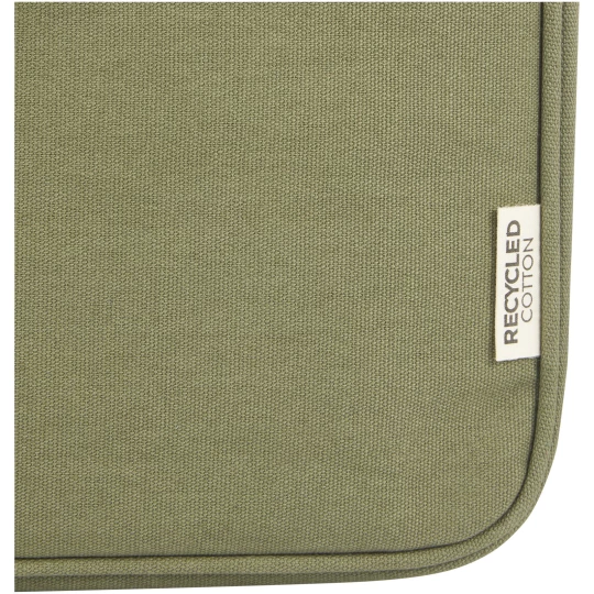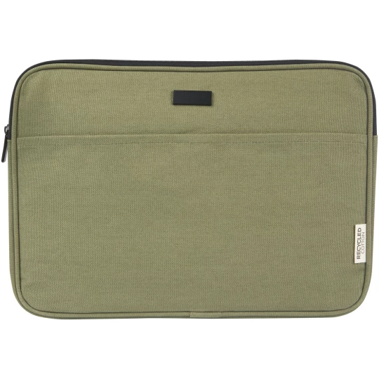 Etui na 14-calowego laptopa Joey zostało wykonane z bardzo trwałych i ekologicznych materiałów, płótna z recyklingu z certyfikatem GRS i podszewki z tworzywa RPET z certyfikatem GRS. Posiada ono chronioną przegrodę na laptopa oraz otwartą przednią kieszeń zapinaną na rzep. Ozdobna metalowa płytka może sprawić, że logo będzie świecić dzięki subtelnemu i matowemu wykończeniu.