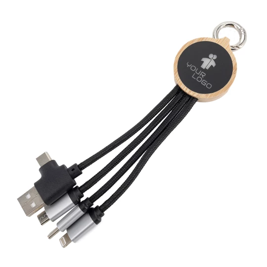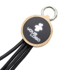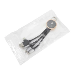 Kabel 4w1 z podświetlanym logo w drewnianej obudowie, LH-ZMU05 - beżowy - (EG0592-13)