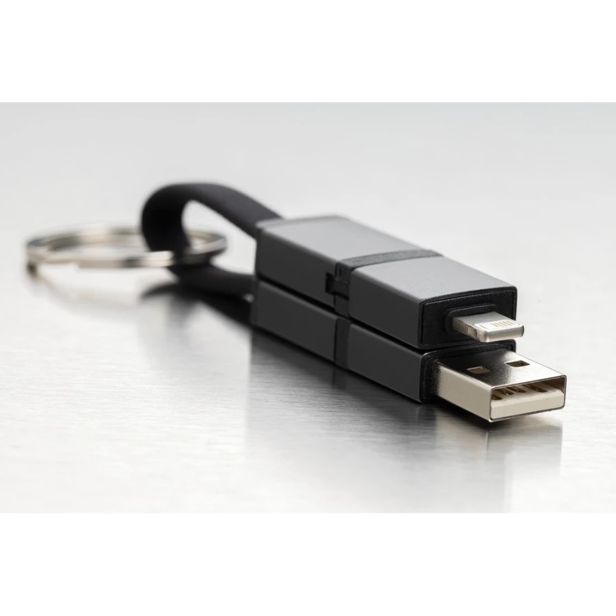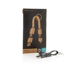 Kabel do ładowania, brelok, obsługiwana moc ładowania do 60W (20V/3A), 4 końcówki: USB, iOS, 2 x USB typu C, magnetyczne końcówki, wykonany z materiałów pochodzących z recyklingu, całkowita zawartość materiałów z recyklingu obliczona w oparciu o wagę całkowitą przedmiotu: 60%
