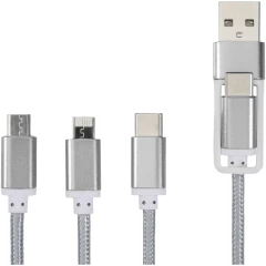 Pleciony nylonowy kabel do ładowania z 5 różnymi złączami: Wejście USB typu C, typu A, wyjście typu C, wyjście Apple® iOS oraz wyjście micro USB. Pozwala to na używanie kabla również z urządzeniami z wyjściem typu C, które znajdują się w nowszych generacjach telefonów i MacBooków. Długość kabla wynosi 100 cm. Natężenie wyjściowe końcówki 2 w 1 do 2A. Wyjście USB typu C o natężeniu prądu do 3A.