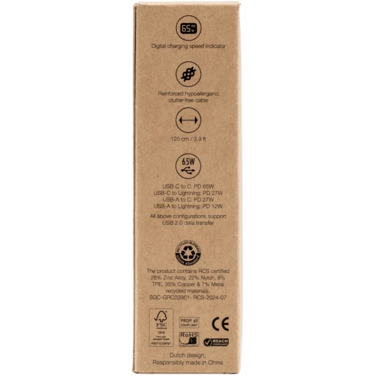 BrandCharger Thor Eco Kabel do ładowania, 120 cm wejście USB-C, USB-A, wyjście: USB-C, końcówka kompatybilna z urządzeniami iOS, maksymalna moc USB-C do USB-C: 65W, USB-C do końcówki kompatybilnej z iOS: PD 27W, USB-A do USB-C: PD 27W, USB-A do końcówki kompatybilnej z urządzeniami iOS: PD 12W, produkt wykonany z metalu, TPE i nylonu