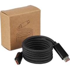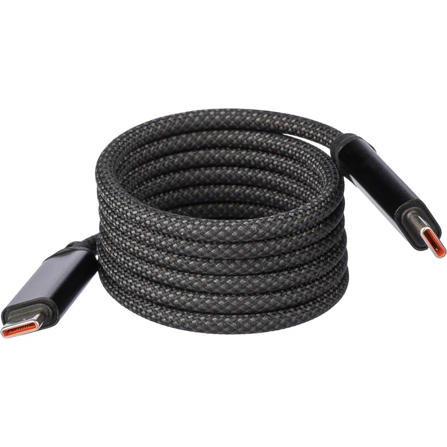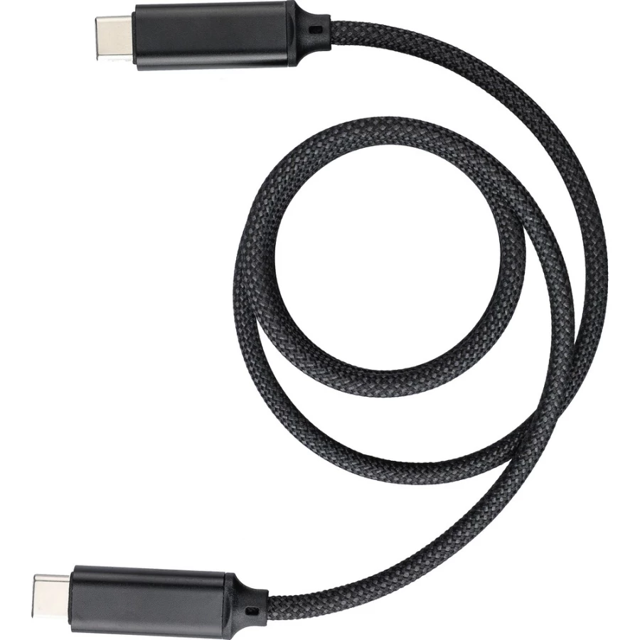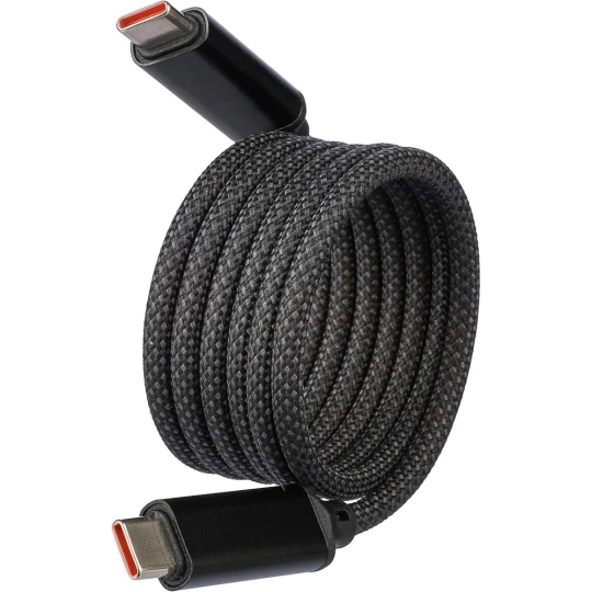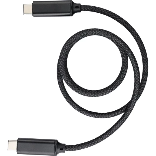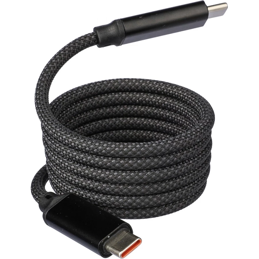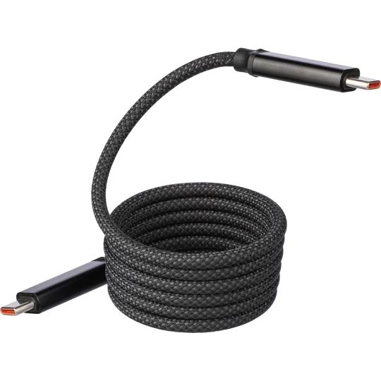 Kabel do przesyłania danych i ładowania z końcówkami 2 x USB-C, szybkość transmisji danych 240 Mb/s, dzięki magnesowi wewnątrz kabel jest automatycznie zwijany, moc wyjściowa ładowania 60W, zapakowany w brązowy kartonik, produkt wykonany z nylonu i aluminium