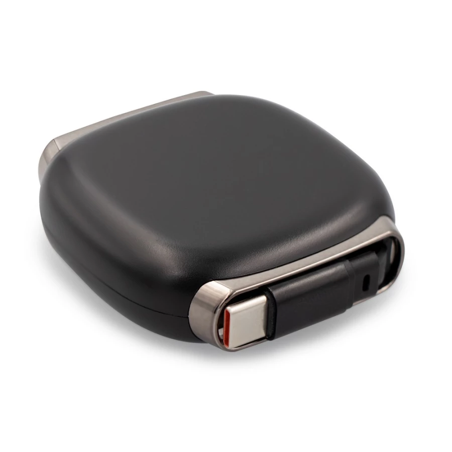 Kabel rozwijany w kwadratowej obudowie, złącze USB-C do USB-C, funkcja ładowania i transmisji danych, kompaktowa forma, napięcie i natężenie ładowania: DC 5V/9V/12V/15V/20V 5A max, 100 W max, średnia prędkość transmisji danych: 35 MB/s, regulowana długość kabla, max 1m