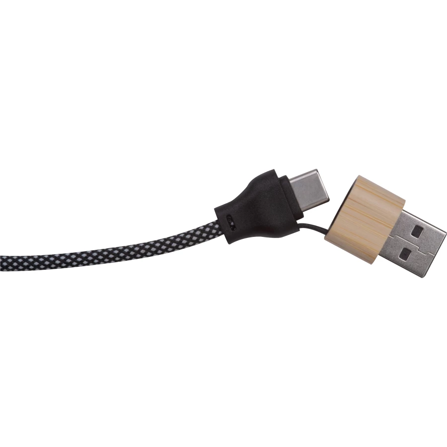 Kabel do szybkiego ładowania 60 W, o długości 3 m z wtyczką wejściową USB - C, wyjściem USB-C z adapterem na USB. Kabel posiada powłokę z PET, która zapobiega uszkodzeniom.