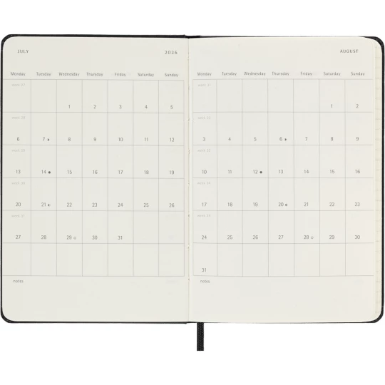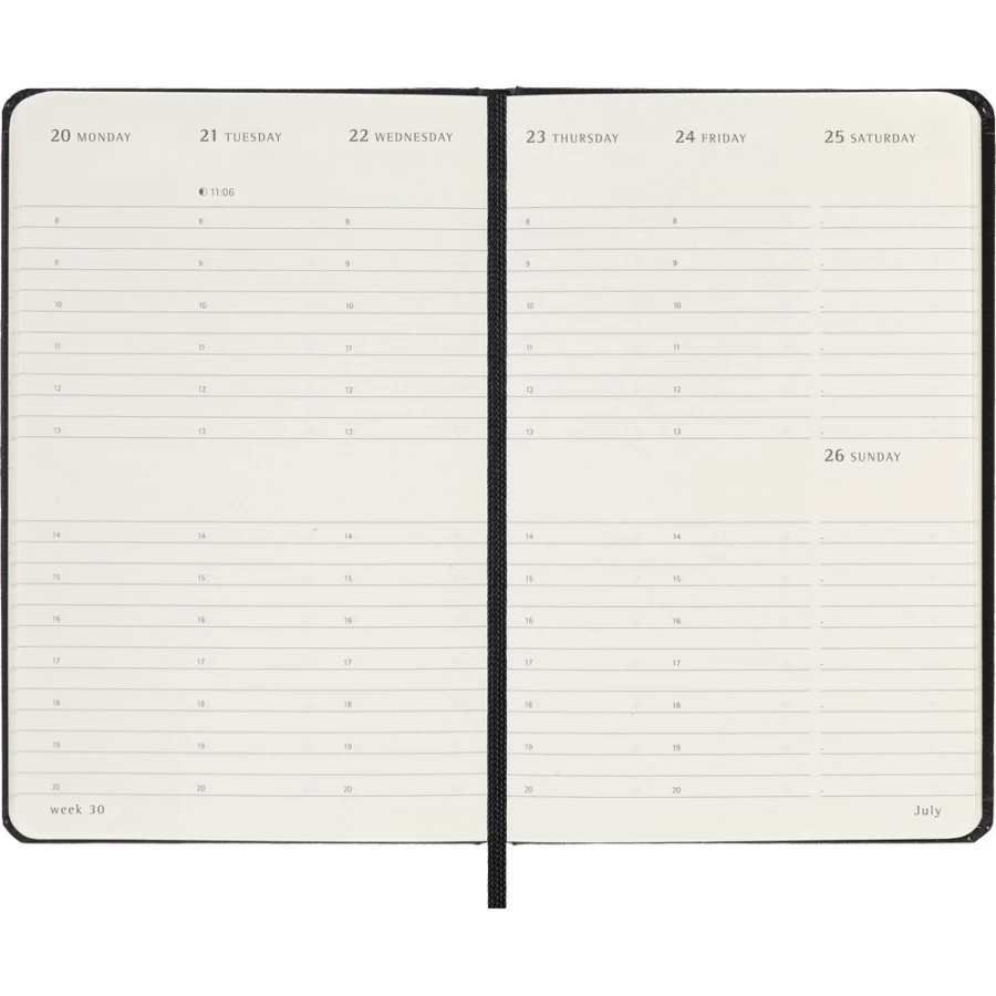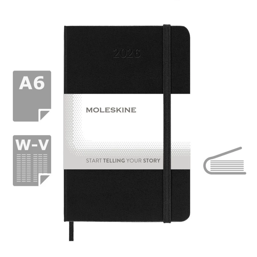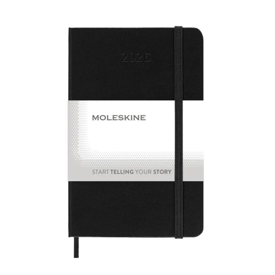 Kalendarz kieszonkowy (ok. A6, pocket) MOLESKINE, twarda okładka, tygodniowy, wertykalny (144 str.), zakładka i elastyczna opaska do zamykania