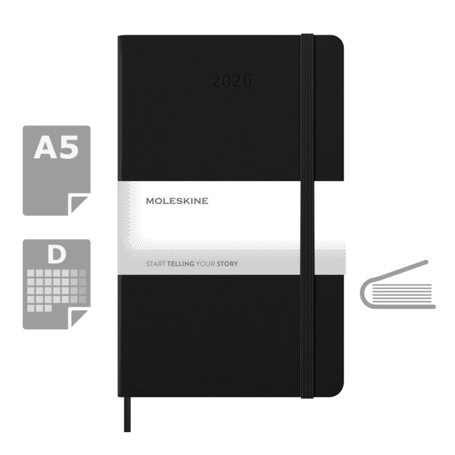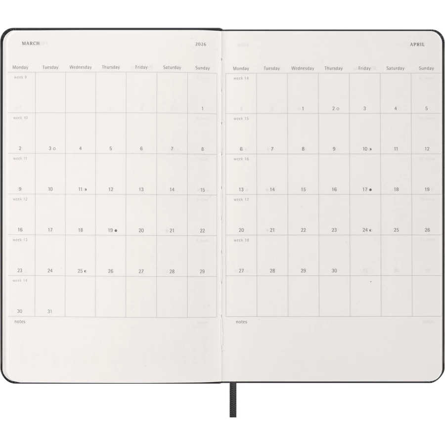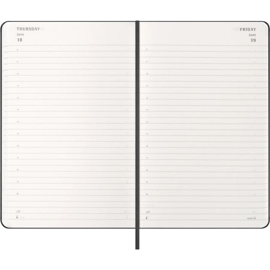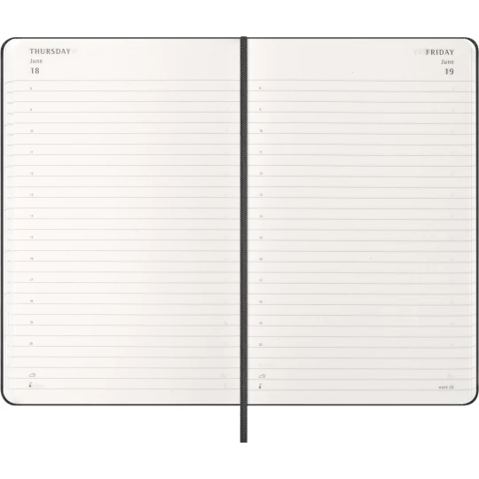 Kalendarz duży (ok. A5, large) MOLESKINE, twarda okładka, dzienny (400 str.), zakładka i elastyczna opaska do zamykania