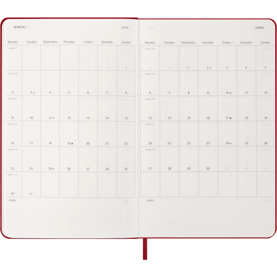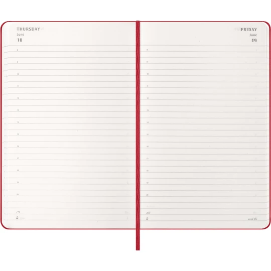 Kalendarz duży (ok. A5, large) MOLESKINE, twarda okładka, dzienny (400 str.), zakładka i elastyczna opaska do zamykania