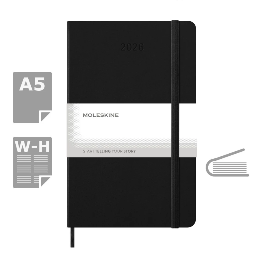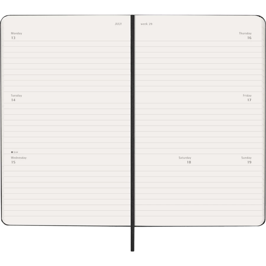 Kalendarz duży (ok. A5, large) MOLESKINE, twarda okładka, tygodniowy, horyzontalny (144 str.), zakładka i elastyczna opaska do zamykania