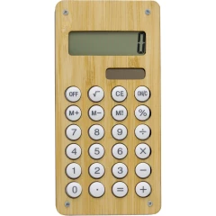 Kalkulator 8-cyfrowy, gra labirynt z kulką na odwrocie, panel słoneczny, bambusowy front