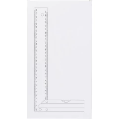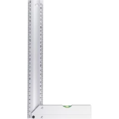 Kątownik 30 cm, poziomica, pomiar w cm, zapakowany pojedynczo w brązowy kartonik, produkt wykonany z aluminium