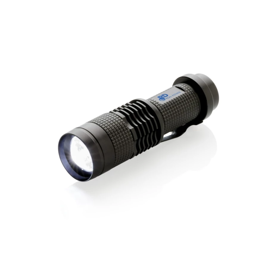 Kieszonkowa latarka CREE 3W o bardzo jasnym świetle, wykonana z trwałego aluminium, 85 lumenów, czas pracy do 4 godzin, baterie w komplecie, ślad węglowy produktu: 0,89 kg CO2
