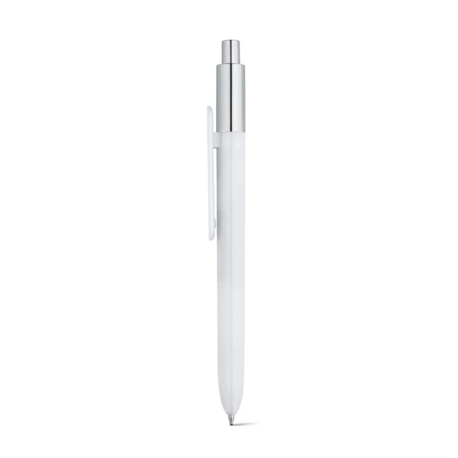 Długopis z ABS z błyszczącym wykończeniem i chromowaną końcówką. Dostępny w szerokiej gamie kolorów. Zawiera wkład X20 z niebieskim tuszem. ø11 x 139 mm