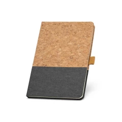 Notes A5 z okładką z korka i płótna. Posiada 192 strony w linie w kolorze kości słoniowej (70 g/m²), wykonanym z certyfikowanego materiału FSC™ i innych kontrolowanych materiałów, oraz uchwyt na długopis (nie jest dołączony). Ponieważ produkt jest wykonany z naturalnych materiałów, kolor produktu oraz wynik drukowania mogą się różnić w zależności od produktu. 140 x 210 mm