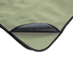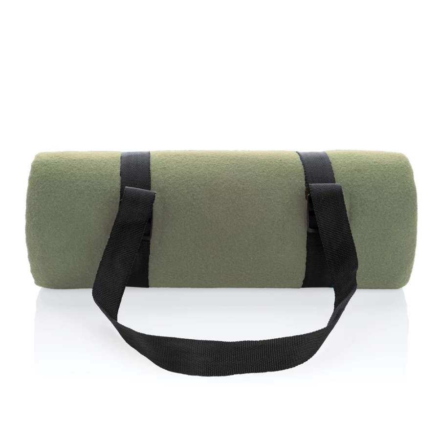 Koc piknikowy, pasek do zwijania i przenoszenia, powłoka hydrofobowa chroni przed zimnem i wilgocią, wykonany z RPET, do którego produkcji zostało ponownie wykorzystanych 27 butelek PET 0,5l, dzięki zastosowaniu technologii śledzącej AWARE™ wykorzystane włókna są identyfikowalne z pochodzenia, rozmiar 150x130 cm, 2% wpływów z każdego sprzedanego produktu z kolekcji Impact jest przekazywane na rzecz Water.org