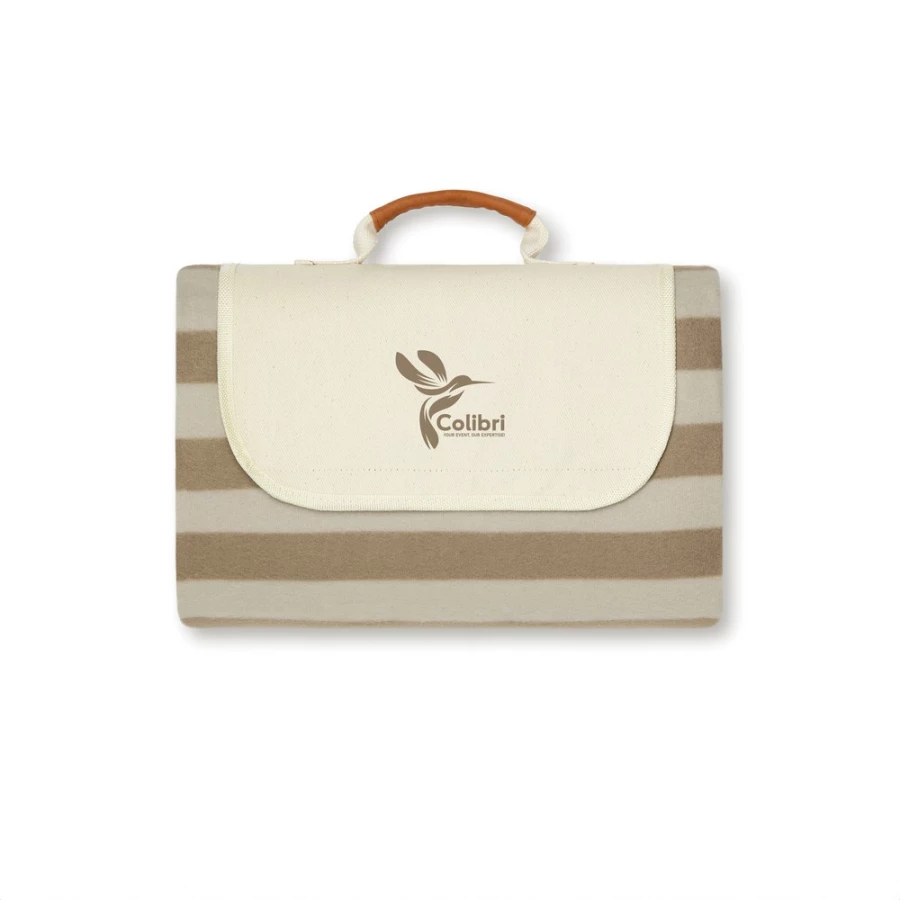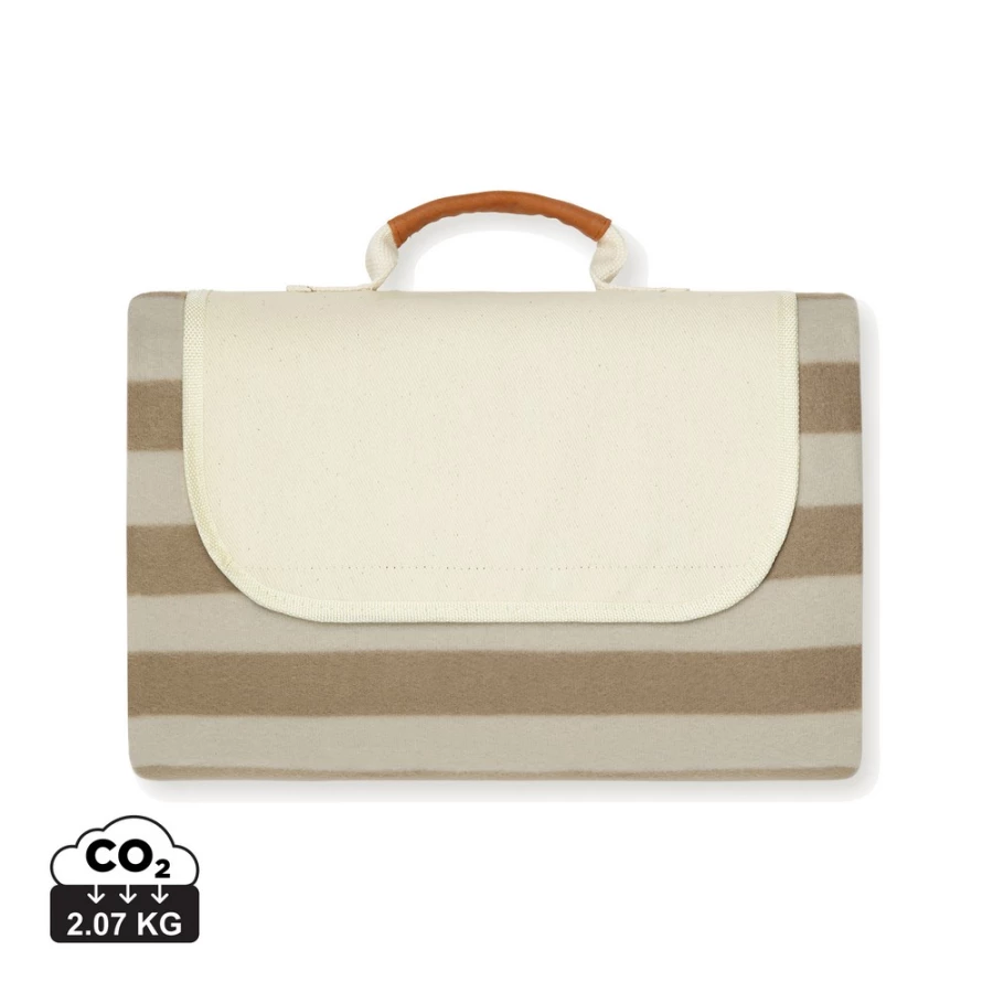 Koc piknikowy VINGA Alba RPET z miękkiego polaru z bawełnianym płótnem i detalami z PU, spód wykonany jest z materiału PEVA, który nie przepuszcza wody