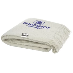 Niezwykle miękki koc z plastiku z recyklingu, owinięty wstążką z plastiku 190T z recyklingu. Pakowane w torebkę z polietylenu pochodzącego z recyklingu. Długość frędzli: 10 cm z każdej strony. Rozmiar wstążki: 72 cm x 4 cm.