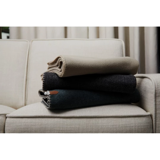 Koc w kratę, wykonany z polaru pochodzącego w 30% z recyklingu, spełnia standardy normy OEKO-TEX Standard 100