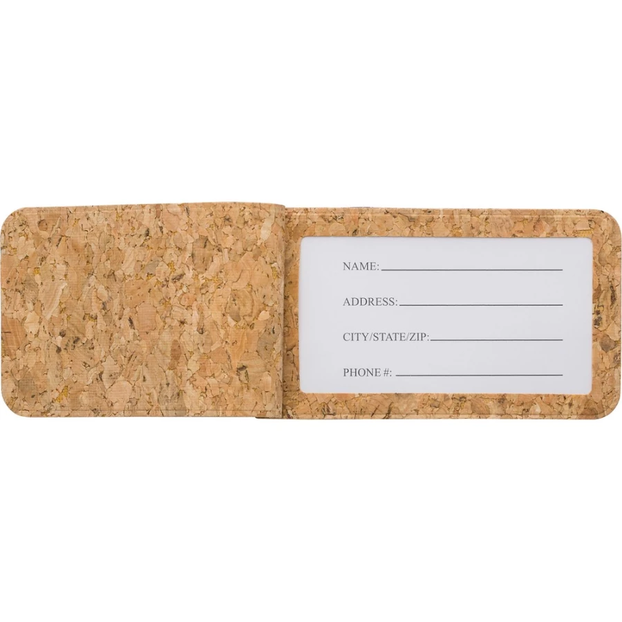 Korkowa zawieszka do bagażu, zawiera karteczkę na dane