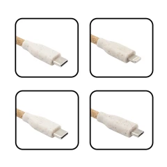 Korkowy kabel do ładowania BRIGHT, elementy z włókien słomy pszenicznej, długość 120 cm, 4 końcówki: 2x USB-C, micro USB oraz kompatybilna z urządzeniami iOS, moc maksymalna ładowania USB C do USB C 60W, pozostałe złącza 12W, końcówka USB-C z funkcją synchronizacji