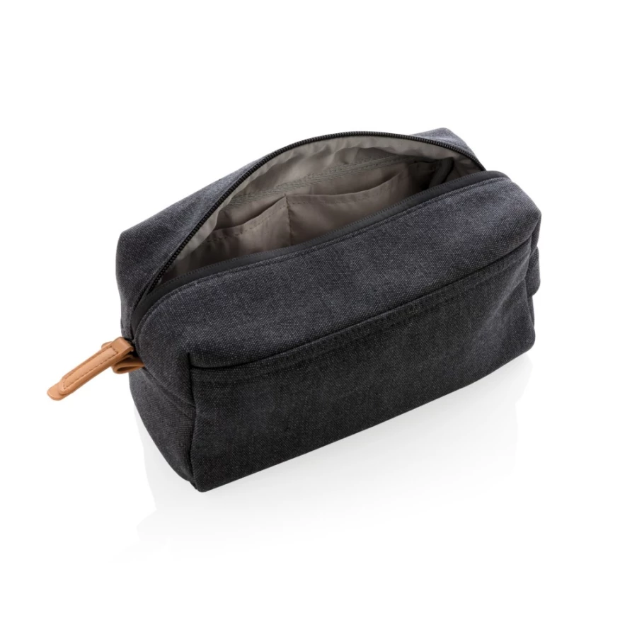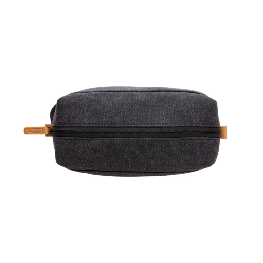 Kosmetyczka z naturalnego i wytrzymałego płótna, kompaktowy rozmiar, nie zawiera PVC, ślad węglowy produktu: 1,64 kg CO2